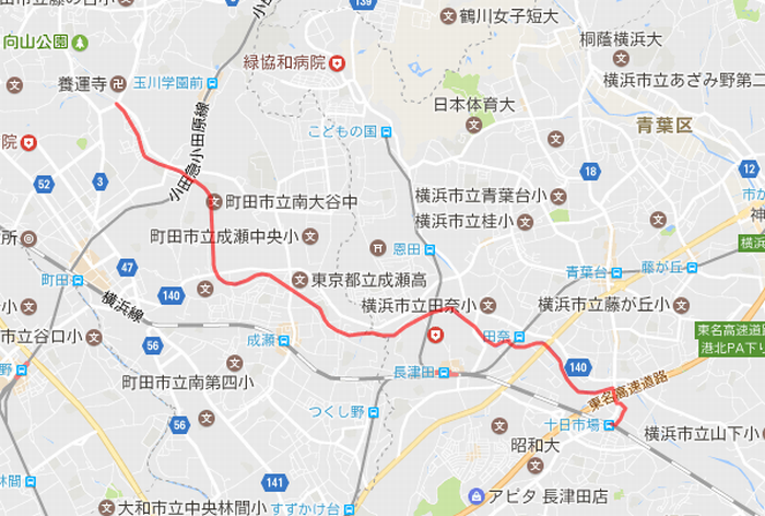 JR横浜線十日市場から下流(中山方面)に向かうコースです。約3.3km